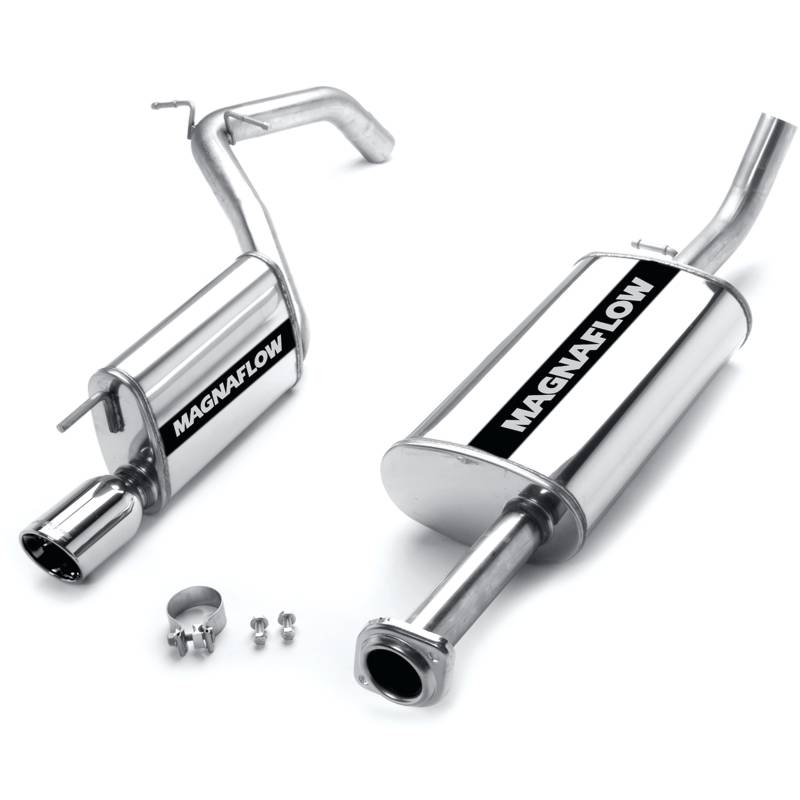 Street Series Stainless Cat-Back System The MagnaFlow 2005-2010 Jeep Grand Cherokee Street Series Cat-Back Performance Exhaust System brings out the personality of your 5.7L 2005-2010 Jeep Grand Cherokee with our signature resonant, powerful engine tone and dyno-proven performance. Thanks to its fast-flowing, mandrel bent 2.5in. main piping and 2 Straight-Through mufflers ending in a Single Straight Passenger Side Rear exit with 4in. Polished Welded-On Double Wall Angle Cut Rolled Edge tips, this Jeep Grand Cherokee exhaust kit has the performance chops to match its sporty sound and appearance. Upgrade your ride to the next level with an exhaust that has the pipes to put other Jeep Grand Cherokee's to shame. With this system your vehicle will be producing Moderate exterior and Mild interior sound levels while leaving other cars and trucks feeling envious at every stoplight. Exhaust kit 16631 features a cat-back layout that replaces your ride's stock exhaust components from near the catalytic converter on back. Extensive 3D scanning during development has resulted in a direct-fit design that you can easily install yourself. 16631 is produced using CNC precision robotic manufacturing techniques and is backed by MagnaFlow's 1-year limited finish warranty and limited lifetime construction warranty. Durable corrosion-resistant stainless steel construction CNC precision robotic manufacturing techniques Dyno-proven performance