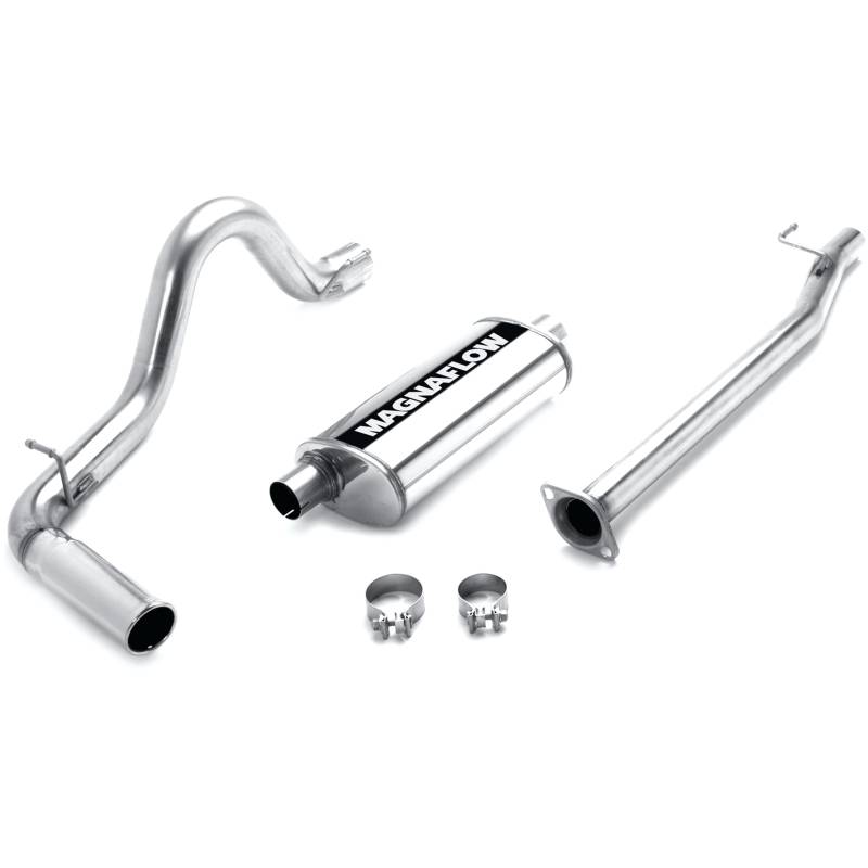 Street Series Stainless Cat-Back System The MagnaFlow 2005-2012 Toyota Tacoma Street Series Cat-Back Performance Exhaust System brings out the personality of your 4.0L 2005-2012 Toyota Tacoma with our signature resonant, powerful engine tone and dyno-proven performance. Thanks to its fast-flowing, mandrel bent 3in. main piping and 1 Straight-Through mufflers ending in a Single Passenger Side Rear exit with 3.5in. Polished Welded-On Single Wall Angle Cut Rolled Edge tips, this Toyota Tacoma exhaust kit has the performance chops to match its sporty sound and appearance. Upgrade your ride to the next level with an exhaust that has the pipes to put other Toyota Tacoma's to shame. With this system your vehicle will be producing Moderate exterior and Mild interior sound levels while leaving other cars and trucks feeling envious at every stoplight. Exhaust kit 16625 features a cat-back layout that replaces your ride's stock exhaust components from near the catalytic converter on back. Extensive 3D scanning during development has resulted in a direct-fit design that you can easily install yourself. 16625 is produced using CNC precision robotic manufacturing techniques and is backed by MagnaFlow's 1-year limited finish warranty and limited lifetime construction warranty. Durable corrosion-resistant stainless steel construction CNC precision robotic manufacturing techniques Dyno-proven performance