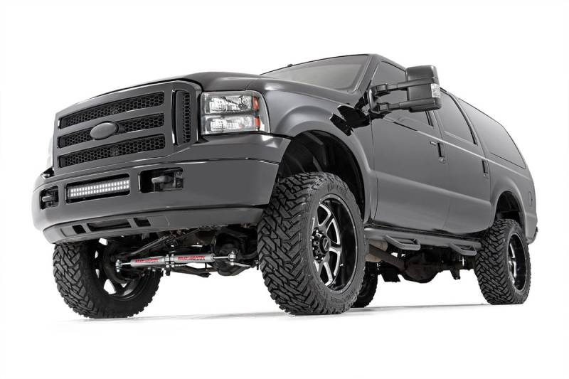 Gain increased ground clearance and killer good looks with Rough Country's 3-inch Suspension Lift for 00-05 Ford Excursion SUVs. This all-inclusive kit features everything you need to run up to 33x12.50 tires while giving you plenty of increased ride-height to tackle off-road obstacles.This kit features a set of lifted leaf springs and rear blocks to provide additional ground clearance while leveling the front with the rear for a clean, even look. A heavy-duty track bar helps keep your axle at the optimum angle, especially in uneven off-road environments! This kit also features front and rear N3 shocks for an impressive ride quality both on and off-road.Best of all, this kit features a 100% bolt-on installation process making installation a cinch, with no cutting or grinding required to install. This kit includes Rough Country's Lifetime Replacement Warranty.