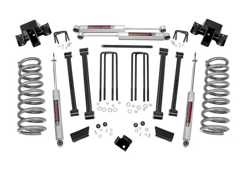 Transform your 1994-2002 Dodge Ram 2500 with the Rough Country 3-inch Lift Kit, designed to elevate both your ride height and style for an unforgettable look on and off the road.Increase Ride Height and Style: Boost your truckΓÇÖs presence with a 3-inch lift, giving you the aggressive stance you crave and commanding attention wherever you go.Comprehensive Kit: This all-inclusive package includes everything you need for a complete upgradeΓÇödurable control arms, HD lifted coil springs, and rear fabricated anti-wrap blocks that enhance your truckΓÇÖs capability and durability.Configurable Shock Options: Customize your ride with a choice of nitrogen-charged N3, V2 Monotube, or M1 Monotube shocks, offering the perfect balance of on-road comfort and off-road performance.Quick and Easy Installation: Save time and effort with this 100% bolt-on design. With common tools and a little time in your garage, you can get your truck lifted and ready for adventure.Limited Lifetime Replacement Guarantee: Enjoy peace of mind knowing that Rough Country backs this kit with a Limited Lifetime Replacement Guarantee.The Rough Country 3-inch Lift Kit delivers the perfect combination of strength, performance, and style, all while making your Dodge Ram 2500 ready for any terrain. Whether you're cruising on the highway or conquering the trails, this kit is your ticket to a thrilling, customizable ride experience.