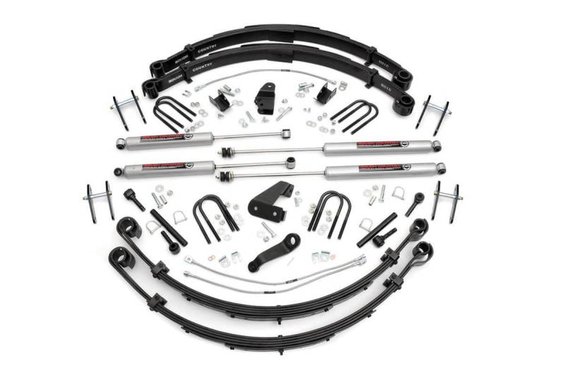 - Easy Bolt-On Installation: Designed for a straightforward, hassle-free setup with no major modifications required.\ Increased Ground Clearance: Gain extra height for improved off-road capability and obstacle clearance.\ Front-to-Rear Leveling: Balances the front and rear for a more aggressive stance and improved handling.\ Double-Tapered Leaf Springs with Teflon Pads: Engineered for a smoother, more comfortable ride without sacrificing durability.\ Quick Disconnects Included: Enhance suspension articulation and off-road flexibility for demanding terrain.\ Application-Valved N3 Series Shock Absorbers: Deliver optimal performance on and off-road, providing superior control, stability, and comfort..