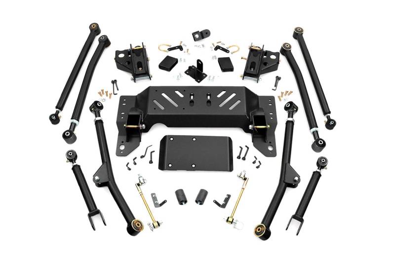 Boasting some impressive features, the ZJ Longarm Kit is a comprehensive package including everything needed for a great suspension lift while maintaining the vehicle's crucial center of gravity. The kit includes adjustable high-clearance X-Flex upper and lower control arms with durable rubber bushings, featuring X-Flex joints. This lift kit features high-clearance components with a front y-link and rear 4-link control arm design. This promotes extreme axle flex while keeping pinion angles optimized.