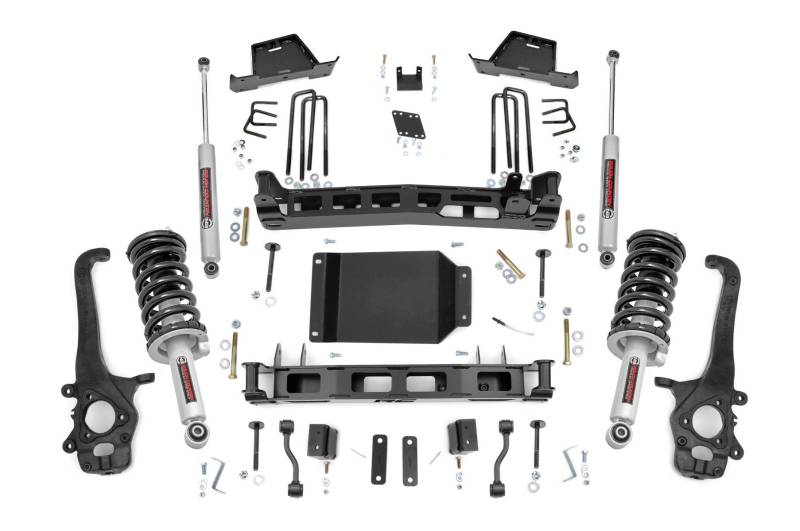 Explore New Heights: Give your first-generation Nissan Titan an aggressive new look and unparalleled off-road performance with Rough Country's 6-inch Suspension Lift. This all-inclusive kit features everything needed to take your Nissan off the freeway and into the fields.Innovative Design and Construction: When changing a vehicle's suspension, the key to preserving ride quality is keeping the geometry of all suspension components as close to their factory angles as possible. This suspension kit combines the use of durable steel knuckles, differential brackets, and drop cross members to reduce cv angles and simulate factory angles all while achieving new heights. Featuring a set of upper strut spacers that offer uncompromised strength and rigidity, gaining lift height is no issue. Completing the rear of this suspension kit is a set of rear blocks, shocks, and u-bolts that allow you to retain factory-like geometry. This combined setup provides enough clearance to run 35" tires without additional modifications. We didn't want to limit you to one standard kit. Rough Country's 6-inch kit is also available with our premium N3 loaded struts. These performance N3 struts are specifically tuned for the Nissan Titan and offer improved tire contact with the road for increased stability and performance.Installation: With minor cutting and a strut compressor required to install, an estimated timeframe of 8-10 hours is recommended to complete this full installation. This full kit can be installed at home and can be completed efficiently and quickly!Limited Lifetime Replacement Warranty: Rough Country's 6" Suspension Lift Kit is backed with a limited lifetime replacement warranty towards manufacturer defects. As such, the product is protected from structural and workmanship damage after the date of purchase. With our industry-leading warranty give yourself peace of mind when using Rough Country's Suspension products!