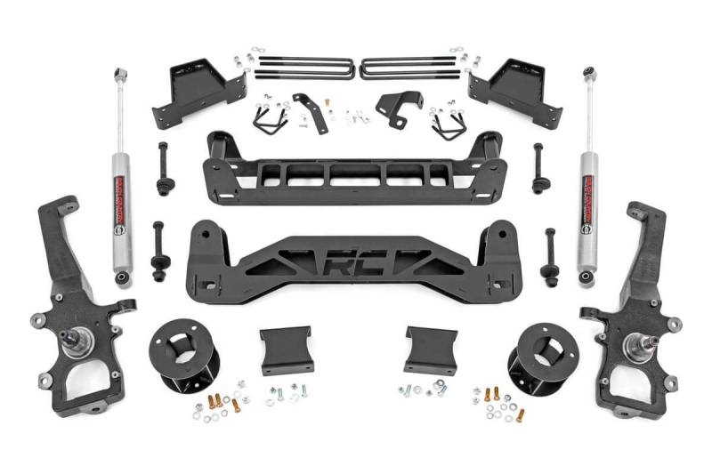 Transform your 2004-2008 Ford F-150 2WD with Rough Country's 6-inch Suspension Lift, giving it an aggressive new look and boosting off-road performance like never before. This all-inclusive kit is engineered to elevate your Ford, providing the perfect balance of strength and style on any trail.Achieve Enhanced Ride Height and Stability: With durable lifted knuckles and strut spacers, you'll gain the ride height needed to run up to 35-inch tires with proper wheel backspacing, all while maintaining Track Width Consistency for improved handling and stability.Upgrade Your Vehicle's Performance: This kit includes Cam Bolts, Brackets, Sway-Bar Drop Brackets, and Brake Line Brackets, ensuring all components stay at optimal angles for a factory-like ride. The 1/4-inch thick plate steel front and rear crossmember enhances your truck's strength and gives it a bold, stylish appearance. Enjoy Long-Lasting Durability: Our Stronger Fabricated Rear Blocks offer superior strength and durability compared to traditional cast blocks, while eliminating common axle wrap issues for smoother off-road and on-road performance.Includes Rough Country's N3 Rear Shocks: This kit comes complete with Rough Country's N3 rear shocks for enhanced ride quality and improved suspension performance. These premium shocks are engineered to deliver superior damping, increased stability, and all-terrain comfort, making your F-150 ready for any adventure right out of the box. Enjoy Peace of Mind: Backed by Rough Country's Limited Lifetime Replacement Warranty, you can hit the trails with confidence, knowing that your investment is covered for the long haul.