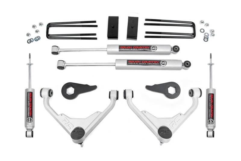 Take Your Truck to New Heights: Rough Country's 3-Inch Bolt-On Lift Kit delivers effortless installation, aggressive style, and unbeatable value for 2001-2010 2500, 2500HD, 2500 Suburban, and Yukon XL models. Elevate your truck with a kit engineered for strength, performance, and a clean, leveled look.Unmatched Strength and Durability: This premium kit includes forged torsion bar adjuster keys, precision-engineered to provide superior strength over factory keys without stressing original components. Forged aluminum upper control arms, available in natural aluminum or powder-coated red, combine lightweight design with rugged performance. Rear blocks and front-to-rear leveling give your truck a balanced stance and support up to 33-inch tires for enhanced off-road capability and on-road style.Customizable Ride Performance: Front and rear N3 Nitrogen-charged shocks come standard, with optional upgrades to M1 or V2 configurations, delivering exceptional ride quality on any terrain. Tailor your suspension setup to match your driving style, whether conquering trails or cruising the highway.Fast, Bolt-On Installation: Featuring a 100% bolt-on design that requires no cutting, drilling, or welding, this kit can be installed with common tools in a home garage. Easily return your truck to stock if desired, all while enjoying a quick and stress-free upgrade process.Confidence with a Lifetime Warranty: Backed by Rough Country's Limited Lifetime Warranty, this kit ensures lasting performance, durability, and peace of mind for every off-road adventure.