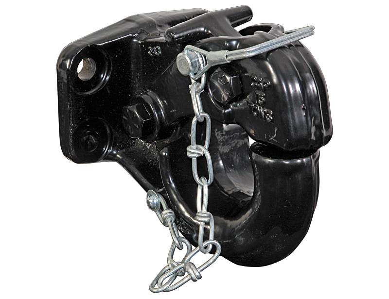 Buyers Products bolt-on 15 Ton Pintle Hook from Buyers Products features tough drop-forged construction and a black powder-coated finish for maximum durability and resistance to corrosion. This versatile hook can handle towing up to 30,000 lb. Each pintle hook includes mounting information, specs sheet, drilling template, and vehicle capacity decal. Mounting Kit (part # 8520) is sold seperately.