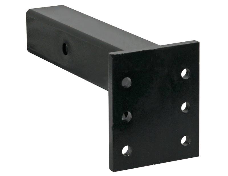 Buyers Products 2-1/2" Pintle Hook Mount slides into a 2-1/2" receiver to provide a mounting plate for a variety of pintle hooks and combination hitches. The pintle hook mount features three pairs of mounting holes for a two position mount. The strong, durable construction features continuous welds and a black powder-coated finish for corrosion resistance.