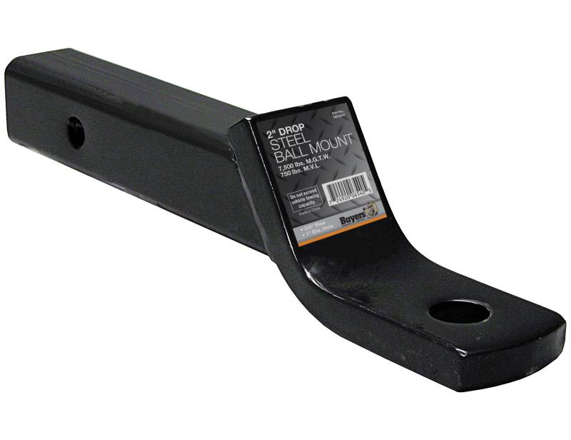 Buyers Products 2" Ball Mount has a maximum gross trailer weight of 7,500 lb. and works well with utility and landscape trailers. The two-piece welded steel construction has a 2" max drop and a rise of 3/4". The mount fits any 2" receiver tube and has a length of 10". The solid steel, black powder-coated mount is durable and corrosion-resistant for years of use. Use it with 1 in. shank diameter towing balls.