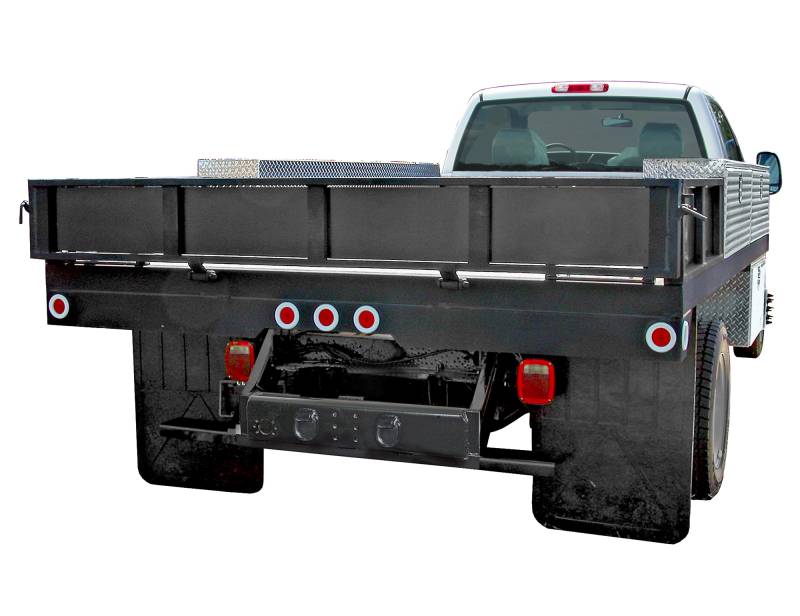 This flatbed hitch plate bumper from Buyers Products is designed to accommodate the longer overhang of flatbeds and flatbed dump trucks, while still providing ICC bumper protection. It will handle towing weights up to 20,000 lb. This versatile product offers a 2 position pintle hook mount for a range of height adjustment. It also includes two forged D-rings for safety chains and a pre-punched hole that fits standard electrical connectors. Its black powder coating is corrosion-resistant. The bumper is ready to mount on Ford 350, 450 and 550 trucks, while drilling is required for GM trucks. It should be both welded and bolted to the frame.