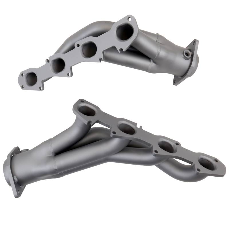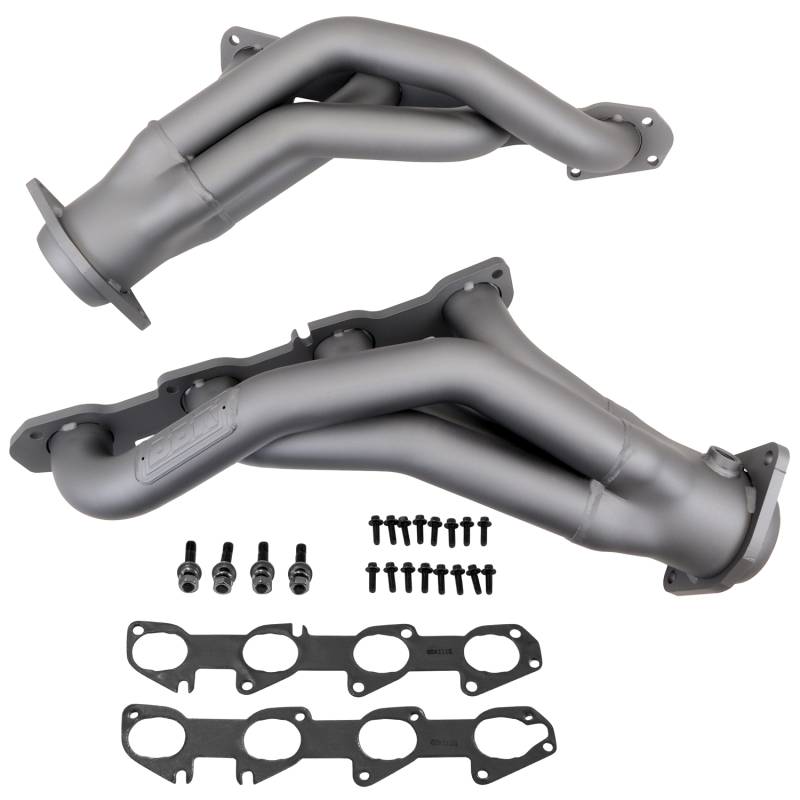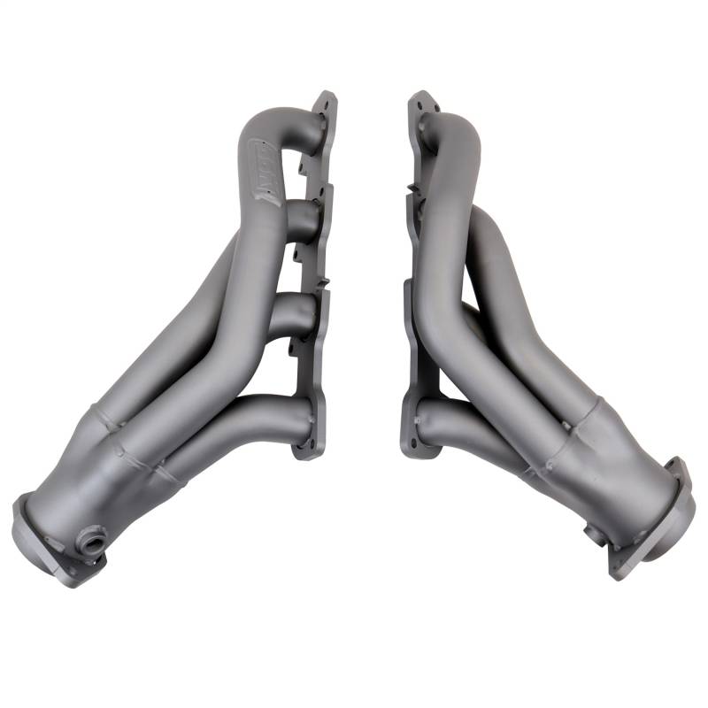 2011-24 DODGE CHALL CHARGER 6.4L 1-7/8 SHORTY HEADERS (TITANIUM CERAMIC) These BBK Performance shorty tuned Length exhaust Headers are designed and constructed as direct fit replacements for all 11-23 6.4L Challenger Charger Hemi applications. Each header is manufactured with 1-3/4" CNC mandrel bent tubing that offers unrestricted exhaust flow for increased horsepower and torque over factory OEM manifolds. BBK tuned Length headers offer improved scavenging waves for better combustion, which leads to improved performance and fuel economy over stock or equal Length headers. As with all BBK Performance exhaust headers they feature a 3/8" laser cut exhaust flange for additional strength and a guaranteed leak free fit. All headers are robotically and precision hand welded and then pressure tested to ensure years of reliability and performance in the real world. All BBK exhaust headers are available in a titanium ceramic or polished silver ceramic coated finish and include new exhaust header gaskets, header bolts and hardware to complete the installation. Titanium Ceramic Finish - Direct Bolt On Installation For Use With Factory Mid Pipe - New Gaskets and Hardware Included