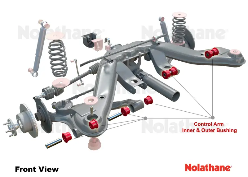 This IRS suspension systems suffers from uneven rear tire wear especially when lowered or when towing. The Nolathane 2 point camber / toe correction kits improve rear wheel alignment settings and saves you on replacing costly tires.\nWith over 40 years of history, Nolathane remains the number 1 replacement and enhancement bushing and chassis component brand throughout Australia & New Zealand and now boasts a warehouse in California & catalog to suit the North American market.