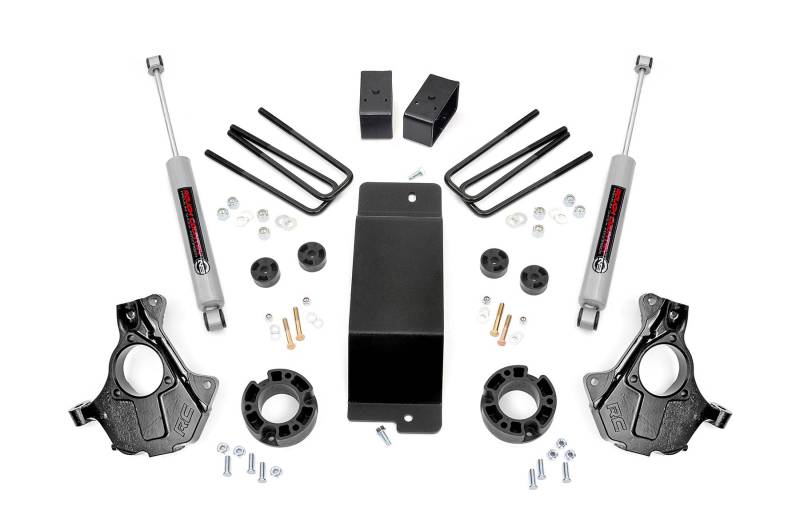 Strike the Perfect Balance: Not too tall, not too small-Rough Country's 3.5" Lifted Knuckle Kit delivers the ideal blend of aggressive looks, enhanced ground clearance, and everyday drivability. Whether you're hitting the trails or cruising the highway, this all-inclusive lift kit gives your vehicle a bold stance and the performance to match.Advanced Suspension Engineering: This kit features precision-engineered lifted knuckles that retain your factory suspension components for dependable, hassle-free installation. Unlike standard kits that can expose your CV axle boots to stress and wear, Rough Country's knuckle design repositions the CV axle for improved clearance from the lower control arm-dramatically reducing boot fatigue and protecting your drivetrain.Factory Rake Eliminated: Achieve a commanding, level profile with a front-to-rear stance that eliminates the factory rake. This not only enhances aesthetics but also improves your vehicle's balance for confident handling on and off the road.Built to Go the Distance: Fabricated rear lift blocks outlast cast alternatives with superior strength and corrosion resistance. Whether you're tackling rocky trails or hauling gear, these rugged components are made to endure.Tailored Ride Performance: This kit includes Rough Country's premium N3 shocks-10-stage variable valving, nitrogen-charged for the perfect fusion of off-road performance and on-road comfort. Want more? It's fully configurable with Rough Country's full lineup of shocks and struts, including the high-performance Vertex reservoir upgrade.Peace of Mind Included: Rough Country backs this kit with a Limited Lifetime Replacement Guarantee, ensuring your suspension is ready for whatever comes next.