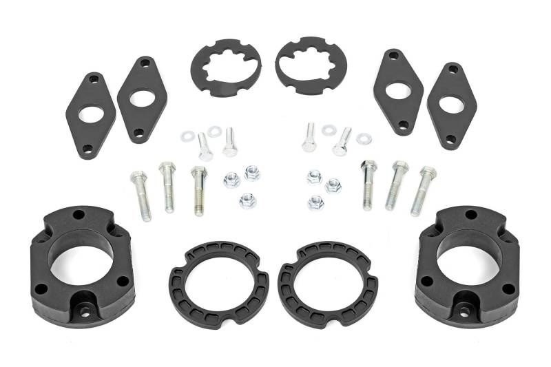 Give your Grand Cherokee increased ride height and aggressive good looks with Rough Country's 2.5in Suspension Lift.This easy-to-install kit features front and rear spacers to lift and level your vehicle for an improved look and enough ride height to run up to 33in tires. Rough Country's WK2 2.5in Lift Kit features a 100% bolt-on installation process with no need to trim your factory studs to install, making it easy to improve the look of your vehicle. This kit is designed to retain your vehicle's smooth, factory ride quality.Includes a Lifetime Replacement Guarantee!\ \