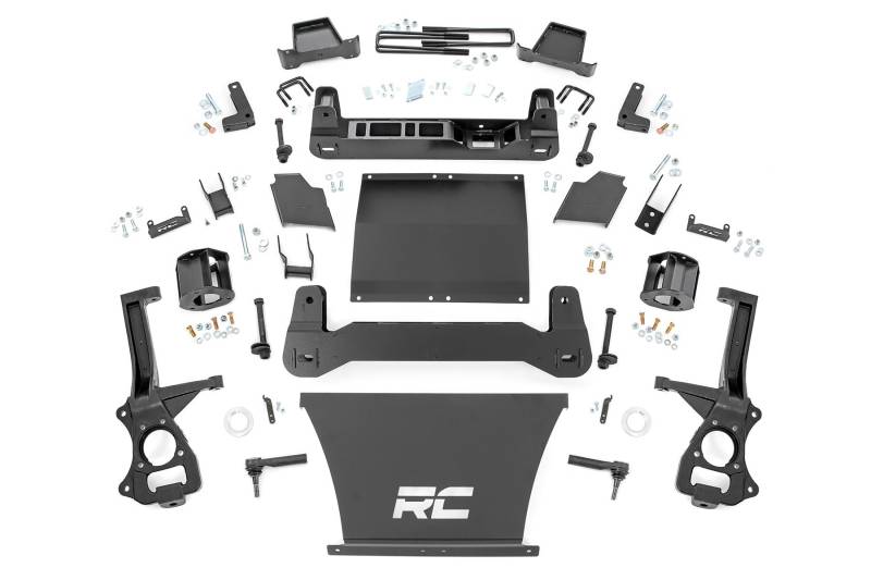 GM's fourth-generation Silverado/fifth-generation Sierra 1500 boasts an aggressive new design, built from the ground up to dominate the road and trail. Transform your truck with Rough Country's 6-Inch Suspension Lift and experience the perfect blend of bold styling, increased clearance, and enhanced off-road capability.Lift and Level for Performance: This kit lifts and levels your Sierra, delivering enhanced ground clearance to tackle rugged terrain while maintaining a confident stance. Engineered for optimized suspension geometry, the high-clearance crossmember design ensures proper alignment and superior handling, so you get off-road performance without sacrificing ride quality. Durability and Precision: Rough Country's 6-Inch Suspension Lift retains the factory track width, providing a precise and stable ride while allowing room for 35x12.50 tires on 10-inch wide wheels with 4.5-inch backspacing. Built for extreme durability, the heavy-duty cast knuckles provide lasting strength, while fabricated blocks outperform cast blocks for superior longevity. Plus, with precision-engineered, laser-cut materials, this lift kit ensures a perfect fit and uncompromising reliability.Limited Lifetime Replacement Warranty: Rough Country's 6" Suspension Lift Kit is backed with a limited lifetime replacement warranty towards manufacturer defects. As such, the product is protected from structural and workmanship damage after the date of purchase. With our industry-leading warranty give yourself peace of mind when using Rough Country's Suspension products!