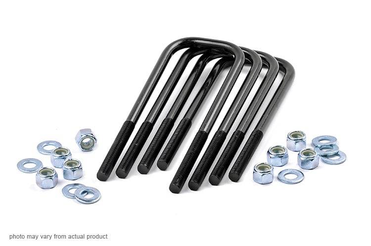 Replace your worn out U-bolts with Rough Country's durable U-Bolt kits! Our steel U-Bolt kits are offered in a variety of sizes and styles to suit any replacement or custom fitting. All bolts are e-coated black, making them corrosion resistant and ready to withstand the elements.