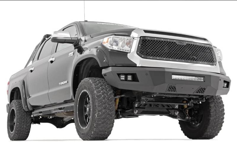 Give the front-end of your Toyota Tundra a unique look with Rough Country's Mesh Grille kit. This grille replacement kit swaps out your stock grille with the eye-catching, head-turning good looks of this aftermarket upgrade. With a unique, laser-cut mesh pattern surrounded by stylish, stainless steel button-head bolts, this grill gives your truck a more menacing look that's sure to draw attention. Each kit is powder coated black to resist corrosion and give a long lifespan of good looks.