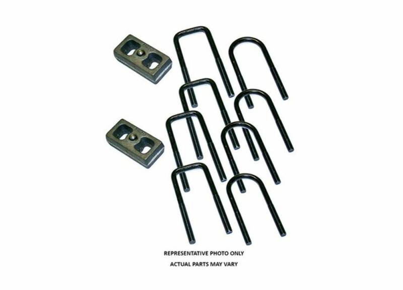 3" Rear Block Kit - 78 Bronco Established in 1975, Superlift remains a pioneer in the industry, and is one of the few suspension companies operated by true truck and off-road enthusiasts. We are passionate about trucks, wheeling and an outdoor lifestyle that go hand-in-hand. We can talk the talk because we walk the walk.This question.... ''What's best for the customer?''... is always at the top of our list in everything we do, from product planning and design to customer service. This simple guiding principal has served us well for decades, and will continue to guide us into the future.We are proud to provide the truck, Jeep and SUV owner products that perform better than advertised. We understand that most people spend the majority of their windshield time on-road, and our designs reflect this. You will be 100% satisfied with our products on-road or off - we guarantee it! Determining what product is right for your vehicle and lifestyle can be a complicated task, especially with so many companies and options to choose from. We urge you to carefully research your purchase. Most lift kits represent a considerable investment, and you will literally live with your choice for years. Talk to fellow off-roaders, and your local automotive specialty shop before making a purchase. We love to talk shop, and we encourage you to give our tech staff a call. Bottom line... if you do your homework, you'll discover that we've done ours. Covered Limited Lifetime WarrantyIncludes: 2 cast iron blocks, four U-bolts, all nuts and washers needed for installation Includes: 2 cast iron blocks, four U-bolts, all nuts and washers needed for installation