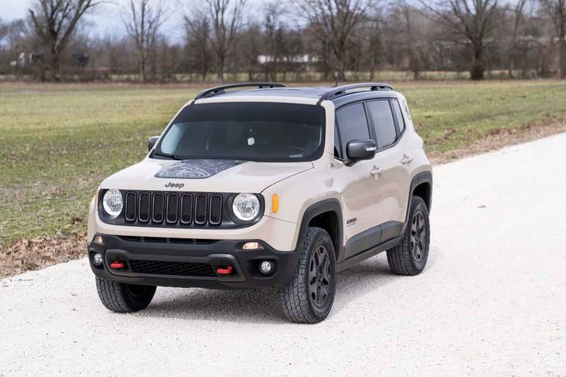Give your Jeep a more aggressive appearance and commanding look with Rough Country's 2in Leveling Kit for Renegade. This easy upgrade offers a total transformation in the look of your vehicle to set yours apart from the pack.When it comes to leveling your Jeep, a small lift can make a huge difference! By leveling the vehicle from front to rear, you get an instant, aggressive look that's sure to turn heads wherever you go. The increased ground clearance allows you to run larger tires and wheels for a customized look that gives your vehicle a one-of-a-kind look and feel.Each kit features a set of front and rear strut spacers, laser cut for a precise fit, and powder coated black to resist the elements. Rough Country's 2in Leveling Kit features an easy installation process with no need for complicated strut disassembly. Includes a Lifetime Replacement Guarantee!