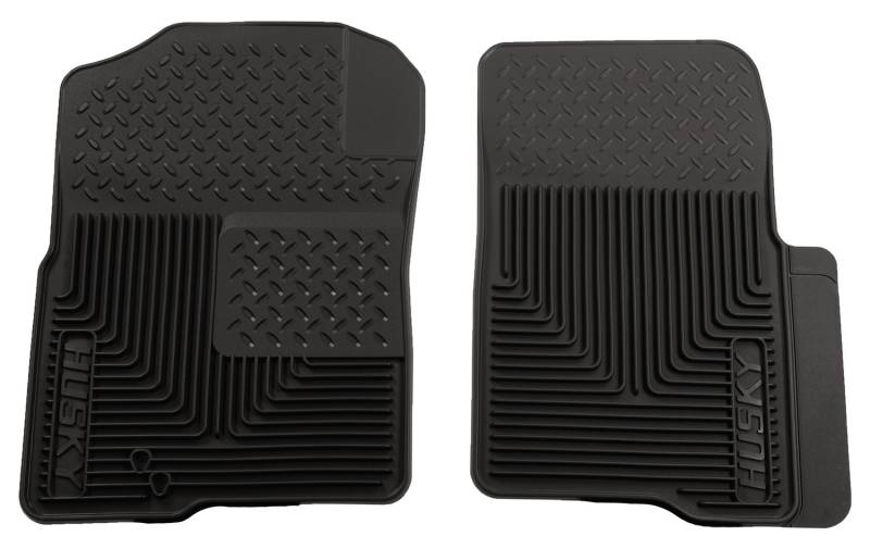 Heavy Duty Floor Mats - Front Floor Mats It's unbeatable Husky durability, custom fit to your vehicle, built for a lifetime of abuse. Its DuraGrip(TM) material stands up to harsh chemicals, while its UniEdge(TM) and center channel keep mud, snow and liquids contained, until you're ready to remove, wash and hit the road. Its StayPut Cleats(TM) keep it firmly anchored underfoot, and all Husky Heavy Duty floor mats mats are guaranteed for life. Found on the floors of the toughest trucks, vans and SUVs on earth. With the perfect balance of strength and softness, our rubberized DuraGrip(TM) material delivers no-slip, no-slide, driving confidence no matter what the road brings. UniEdge(TM) creates a wall around the center channel that funnels mud, snow and other liquids into the recessed ribs---containing the mess, until you can yank, dump, wash and repeat. Our exclusive StayPut Cleats(TM) help keep your liner from shifting around underfoot like lesser liners. When we say it's "guaranteed for life" that is exactly what we mean. No hassles, no guff. If you have a problem, we'll replace it. Proudly made in the USA.