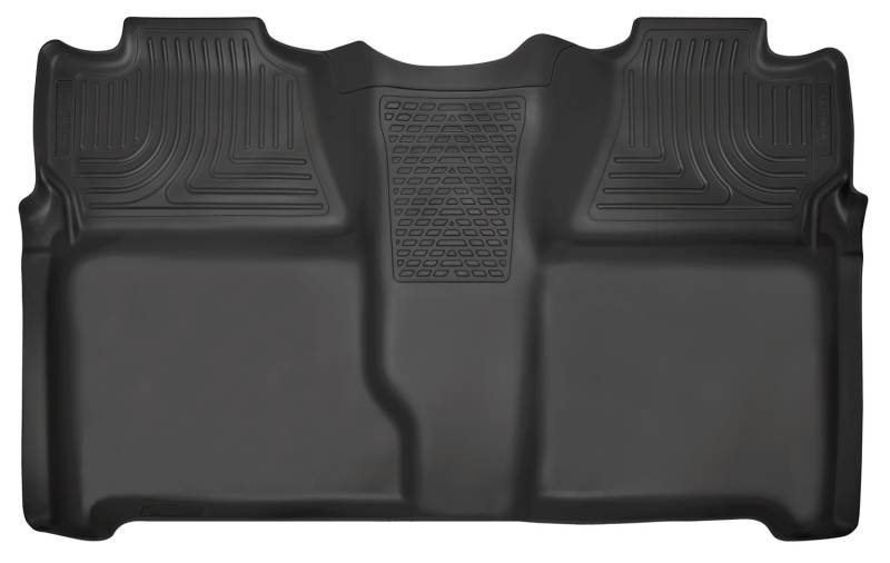 Weatherbeater - 2nd Seat Floor Liner The original all-weather liner is ready, come hell or hot coffee. The Weatherbeater?s construction is a no-slip zone with zero edge curl, and its Stay Put Nibs keep it firmly anchored underfoot. It stands up to chemicals like gas, oil and battery acid, and stays tough and flexible, even under extreme temperatures. Its laser-scanned, FormFit Design? gives your truck, van or SUV an ultra-clean look with easy cleanup to match, while its patented, FormFit Edge? keeps spills contained, carpets unstained. It?s unbeatable Husky protection for life, warrantied the same. Proudly made in the USA. Our patented FormFit Design(TM) process gives you a glove-like, laser-tight fit to your make and model. Floorboards are 3D scanned to precisely match the contours of your vehicle. Our patented FormFit Edge(TM) features a raised ridge that runs along the door jam, protecting your truck, van, or SUV from all manner of muck. Over vinyl or carpet, our StayPut(TM) Cleats firmly lock to your factory anchors. It's rock-steady stability underfoot, only by Husky. Sporty, rugged, and built for a lifetime of non-stop abuse. Put unbeatable all-weather toughness to work on your floor. WeatherBeater(TM) Liners offer protection that extends all the way to your rear seats. So go ahead, lift the seats and leave them up, load after load. Husky's got your floors, and your back, no matter what the road brings your way.