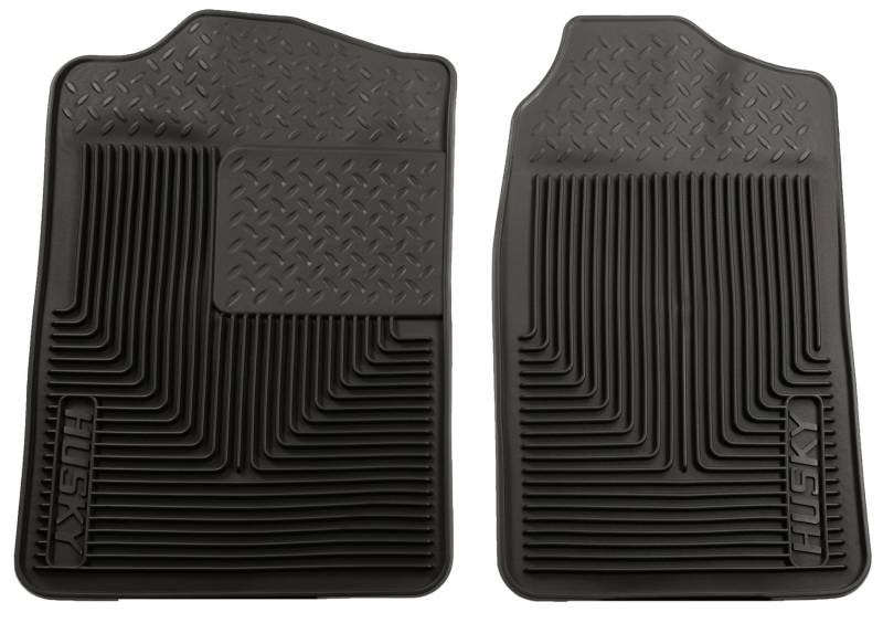 Heavy Duty Floor Mats - Front Floor Mats It's unbeatable Husky durability, custom fit to your vehicle, built for a lifetime of abuse. Its DuraGrip(TM) material stands up to harsh chemicals, while its UniEdge(TM) and center channel keep mud, snow and liquids contained, until you're ready to remove, wash and hit the road. Its StayPut Cleats(TM) keep it firmly anchored underfoot, and all Husky Heavy Duty floor mats mats are guaranteed for life. Found on the floors of the toughest trucks, vans and SUVs on earth. With the perfect balance of strength and softness, our rubberized DuraGrip(TM) material delivers no-slip, no-slide, driving confidence no matter what the road brings. UniEdge(TM) creates a wall around the center channel that funnels mud, snow and other liquids into the recessed ribs---containing the mess, until you can yank, dump, wash and repeat. Our exclusive StayPut Cleats(TM) help keep your liner from shifting around underfoot like lesser liners. When we say it's "guaranteed for life" that is exactly what we mean. No hassles, no guff. If you have a problem, we'll replace it. Proudly made in the USA.