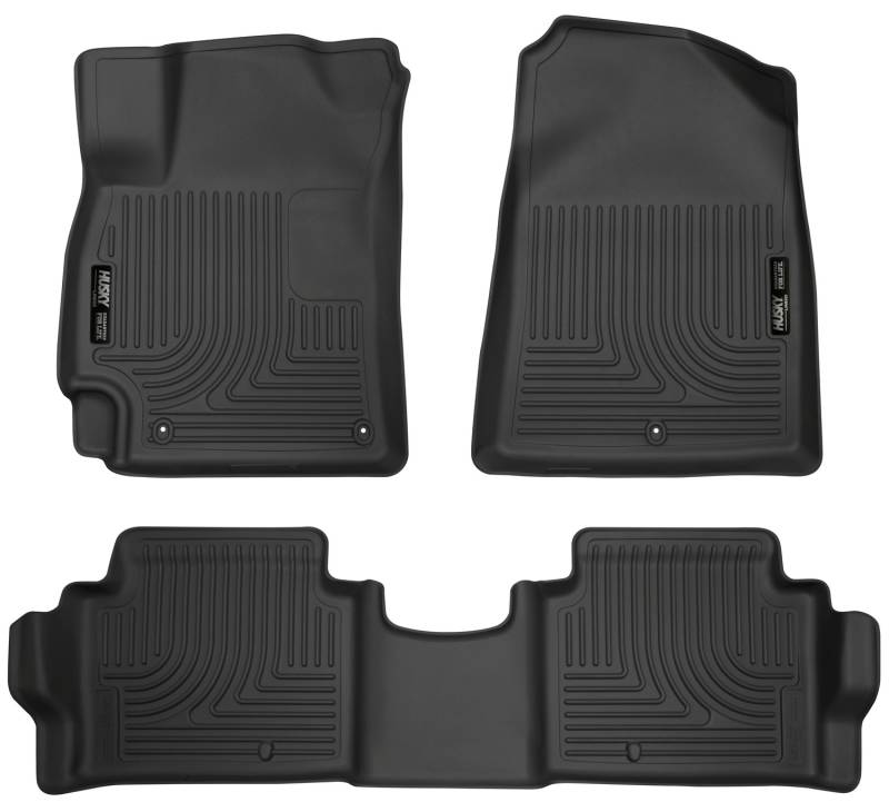 Weatherbeater - Front & 2nd Seat Floor Liners The original all-weather liner is ready, come hell or hot coffee. The Weatherbeater?s construction is a no-slip zone with zero edge curl, and its Stay Put Nibs keep it firmly anchored underfoot. It stands up to chemicals like gas, oil and battery acid, and stays tough and flexible, even under extreme temperatures. Its laser-scanned, FormFit Design? gives your truck, van or SUV an ultra-clean look with easy cleanup to match, while its patented, FormFit Edge? keeps spills contained, carpets unstained. It?s unbeatable Husky protection for life, warrantied the same. Proudly made in the USA. Our patented FormFit Design(TM) process gives you a glove-like, laser-tight fit to your make and model. Floorboards are 3D scanned to precisely match the contours of your vehicle. Our patented FormFit Edge(TM) features a raised ridge that runs along the door jam, protecting your truck, van, or SUV from all manner of muck. Over vinyl or carpet, our StayPut(TM) Cleats firmly lock to your factory anchors. It's rock-steady stability underfoot, only by Husky. Sporty, rugged, and built for a lifetime of non-stop abuse. Put unbeatable all-weather toughness to work on your floor. WeatherBeater(TM) Liners offer protection that extends all the way to your rear seats. So go ahead, lift the seats and leave them up, load after load. Husky's got your floors, and your back, no matter what the road brings your way.