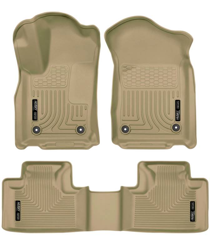 Weatherbeater - Front & 2nd Seat Floor Liners The original all-weather liner is ready, come hell or hot coffee. The Weatherbeater?s construction is a no-slip zone with zero edge curl, and its Stay Put Nibs keep it firmly anchored underfoot. It stands up to chemicals like gas, oil and battery acid, and stays tough and flexible, even under extreme temperatures. Its laser-scanned, FormFit Design? gives your truck, van or SUV an ultra-clean look with easy cleanup to match, while its patented, FormFit Edge? keeps spills contained, carpets unstained. It?s unbeatable Husky protection for life, warrantied the same. Proudly made in the USA. Our patented FormFit Design(TM) process gives you a glove-like, laser-tight fit to your make and model. Floorboards are 3D scanned to precisely match the contours of your vehicle. Our patented FormFit Edge(TM) features a raised ridge that runs along the door jam, protecting your truck, van, or SUV from all manner of muck. Over vinyl or carpet, our StayPut(TM) Cleats firmly lock to your factory anchors. It's rock-steady stability underfoot, only by Husky. Sporty, rugged, and built for a lifetime of non-stop abuse. Put unbeatable all-weather toughness to work on your floor. WeatherBeater(TM) Liners offer protection that extends all the way to your rear seats. So go ahead, lift the seats and leave them up, load after load. Husky's got your floors, and your back, no matter what the road brings your way.