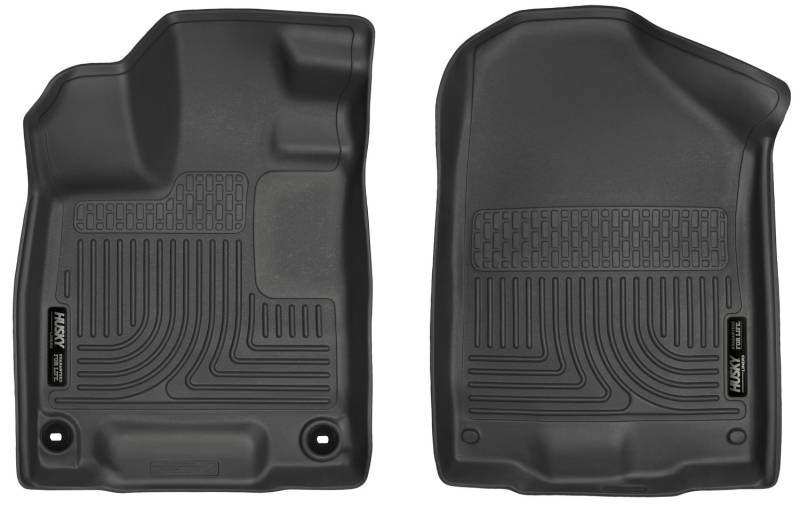 Weatherbeater - Front Floor Liners Expand the Husky Liner protection you love from bumper to bumper, with Weatherbeater? Cargo Liners. These all-weather, any-conditions liners are ready for anything you throw in the back and stand up to even the toughest spills. Husky?s rubberized DuraGrip? surface and ProGard? formula keep cargo protected with durable flexibility, and no shifting around. Installs in minutes and stays in place until you?re ready to take out and clean. Available in black, gray, or tan for a factory look to match your vehicle?s interior. Backed by Husky Liners Guaranteed for Life. Proudly made in the U.S.A. Made with our ProGard? formula to deliver a tough-yet-flexible design that installs easily and cleans up quickly. Weatherbeater? cargo liners are easy to remove and easy to clean up. Just spray it down, shake it off, and it?s back on the job. Built for hassle-free maintenance for life. Our FormFit? design process gives you a glove-like fit. Cargo areas are 3D laser-scanned. A better-than-factory fit for your make & model. The FormFit? edge gives you extra protection from spillover around the edges, with a raised lip to keep everything contained. A solid foundation to protect any type of cargo. No slipping, no sliding, no nonsense.