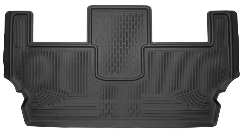 Weatherbeater - 3rd Seat Floor Liner The original all-weather liner is ready, come hell or hot coffee. The Weatherbeater?s construction is a no-slip zone with zero edge curl, and its Stay Put Nibs keep it firmly anchored underfoot. It stands up to chemicals like gas, oil and battery acid, and stays tough and flexible, even under extreme temperatures. Its laser-scanned, FormFit Design? gives your truck, van or SUV an ultra-clean look with easy cleanup to match, while its patented, FormFit Edge? keeps spills contained, carpets unstained. It?s unbeatable Husky protection for life, warrantied the same. Proudly made in the USA. Our patented FormFit Design(TM) process gives you a glove-like, laser-tight fit to your make and model. Floorboards are 3D scanned to precisely match the contours of your vehicle. Our patented FormFit Edge(TM) features a raised ridge that runs along the door jam, protecting your truck, van, or SUV from all manner of muck. Over vinyl or carpet, our StayPut(TM) Cleats firmly lock to your factory anchors. It's rock-steady stability underfoot, only by Husky. Sporty, rugged, and built for a lifetime of non-stop abuse. Put unbeatable all-weather toughness to work on your floor. WeatherBeater(TM) Liners offer protection that extends all the way to your rear seats. So go ahead, lift the seats and leave them up, load after load. Husky's got your floors, and your back, no matter what the road brings your way.