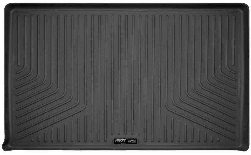Weatherbeater - Cargo Liner Behind 3rd Seat The original all-weather liner is ready, come hell or hot coffee. The Weatherbeater?s construction is a no-slip zone with zero edge curl, and its Stay Put Nibs keep it firmly anchored underfoot. It stands up to chemicals like gas, oil and battery acid, and stays tough and flexible, even under extreme temperatures. Its laser-scanned, FormFit Design? gives your truck, van or SUV an ultra-clean look with easy cleanup to match, while its patented, FormFit Edge? keeps spills contained, carpets unstained. It?s unbeatable Husky protection for life, warrantied the same. Proudly made in the USA. Our patented FormFit Design(TM) process gives you a glove-like, laser-tight fit to your make and model. Floorboards are 3D scanned to precisely match the contours of your vehicle. Our patented FormFit Edge(TM) features a raised ridge that runs along the door jam, protecting your truck, van, or SUV from all manner of muck. Over vinyl or carpet, our StayPut(TM) Cleats firmly lock to your factory anchors. It's rock-steady stability underfoot, only by Husky. Sporty, rugged, and built for a lifetime of non-stop abuse. Put unbeatable all-weather toughness to work on your floor. WeatherBeater(TM) Liners offer protection that extends all the way to your rear seats. So go ahead, lift the seats and leave them up, load after load. Husky's got your floors, and your back, no matter what the road brings your way.