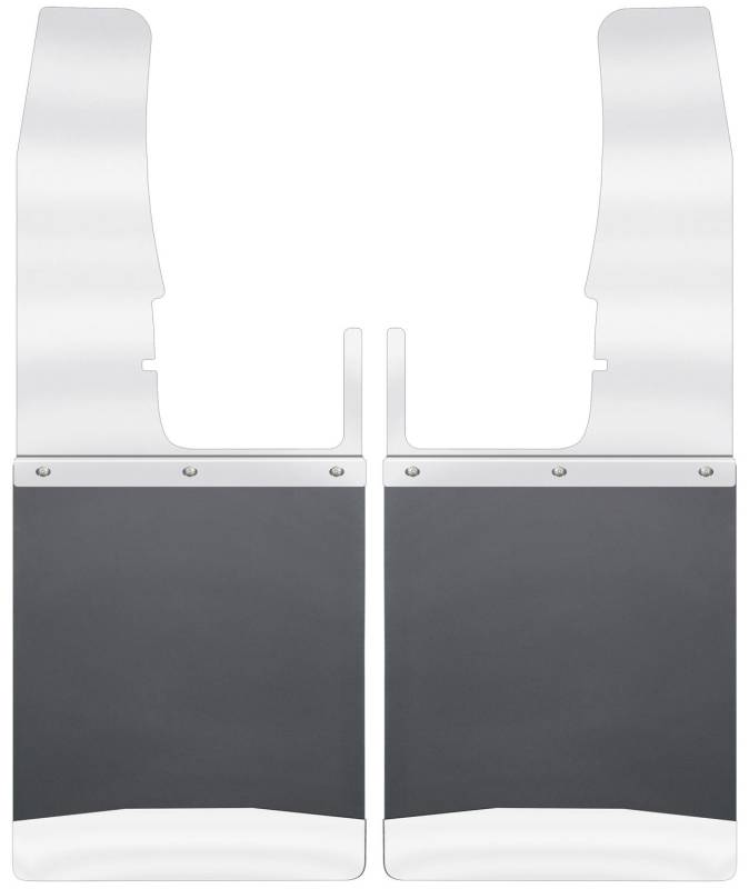 Kick Back Mud Flaps; 2 pc.; 12 in. Wide; Stainless Steel Top And Weight; Front Wheel; Incl. Installation Kit;