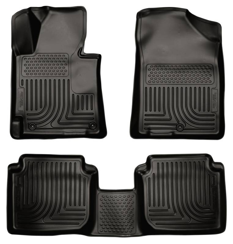 Weatherbeater - Front & 2nd Seat Floor Liners The original all-weather liner is ready, come hell or hot coffee. The Weatherbeater?s construction is a no-slip zone with zero edge curl, and its Stay Put Nibs keep it firmly anchored underfoot. It stands up to chemicals like gas, oil and battery acid, and stays tough and flexible, even under extreme temperatures. Its laser-scanned, FormFit Design? gives your truck, van or SUV an ultra-clean look with easy cleanup to match, while its patented, FormFit Edge? keeps spills contained, carpets unstained. It?s unbeatable Husky protection for life, warrantied the same. Proudly made in the USA. Our patented FormFit Design(TM) process gives you a glove-like, laser-tight fit to your make and model. Floorboards are 3D scanned to precisely match the contours of your vehicle. Our patented FormFit Edge(TM) features a raised ridge that runs along the door jam, protecting your truck, van, or SUV from all manner of muck. Over vinyl or carpet, our StayPut(TM) Cleats firmly lock to your factory anchors. It's rock-steady stability underfoot, only by Husky. Sporty, rugged, and built for a lifetime of non-stop abuse. Put unbeatable all-weather toughness to work on your floor. WeatherBeater(TM) Liners offer protection that extends all the way to your rear seats. So go ahead, lift the seats and leave them up, load after load. Husky's got your floors, and your back, no matter what the road brings your way.