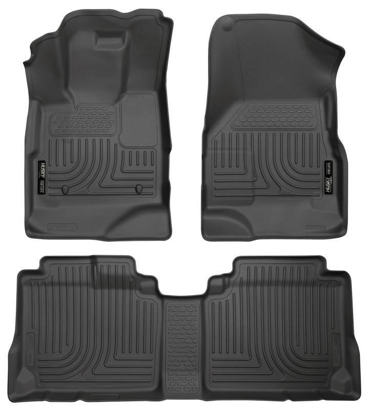 Weatherbeater - Front & 2nd Seat Floor Liners The original all-weather liner is ready, come hell or hot coffee. The Weatherbeater?s construction is a no-slip zone with zero edge curl, and its Stay Put Nibs keep it firmly anchored underfoot. It stands up to chemicals like gas, oil and battery acid, and stays tough and flexible, even under extreme temperatures. Its laser-scanned, FormFit Design? gives your truck, van or SUV an ultra-clean look with easy cleanup to match, while its patented, FormFit Edge? keeps spills contained, carpets unstained. It?s unbeatable Husky protection for life, warrantied the same. Proudly made in the USA. Our patented FormFit Design(TM) process gives you a glove-like, laser-tight fit to your make and model. Floorboards are 3D scanned to precisely match the contours of your vehicle. Our patented FormFit Edge(TM) features a raised ridge that runs along the door jam, protecting your truck, van, or SUV from all manner of muck. Over vinyl or carpet, our StayPut(TM) Cleats firmly lock to your factory anchors. It's rock-steady stability underfoot, only by Husky. Sporty, rugged, and built for a lifetime of non-stop abuse. Put unbeatable all-weather toughness to work on your floor. WeatherBeater(TM) Liners offer protection that extends all the way to your rear seats. So go ahead, lift the seats and leave them up, load after load. Husky's got your floors, and your back, no matter what the road brings your way.