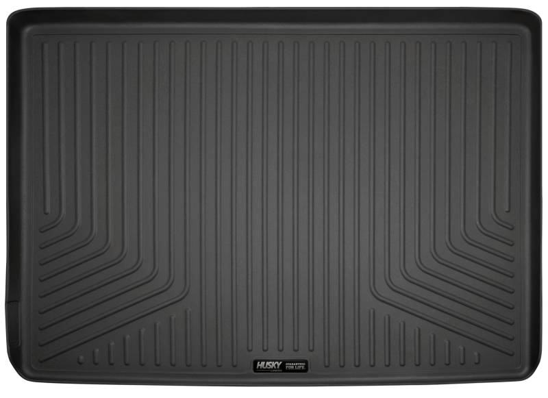 Weatherbeater - Cargo Liner Behind 3rd Seat The original all-weather liner is ready, come hell or hot coffee. The Weatherbeater?s construction is a no-slip zone with zero edge curl, and its Stay Put Nibs keep it firmly anchored underfoot. It stands up to chemicals like gas, oil and battery acid, and stays tough and flexible, even under extreme temperatures. Its laser-scanned, FormFit Design? gives your truck, van or SUV an ultra-clean look with easy cleanup to match, while its patented, FormFit Edge? keeps spills contained, carpets unstained. It?s unbeatable Husky protection for life, warrantied the same. Proudly made in the USA. Our patented FormFit Design(TM) process gives you a glove-like, laser-tight fit to your make and model. Floorboards are 3D scanned to precisely match the contours of your vehicle. Our patented FormFit Edge(TM) features a raised ridge that runs along the door jam, protecting your truck, van, or SUV from all manner of muck. Over vinyl or carpet, our StayPut(TM) Cleats firmly lock to your factory anchors. It's rock-steady stability underfoot, only by Husky. Sporty, rugged, and built for a lifetime of non-stop abuse. Put unbeatable all-weather toughness to work on your floor. WeatherBeater(TM) Liners offer protection that extends all the way to your rear seats. So go ahead, lift the seats and leave them up, load after load. Husky's got your floors, and your back, no matter what the road brings your way.