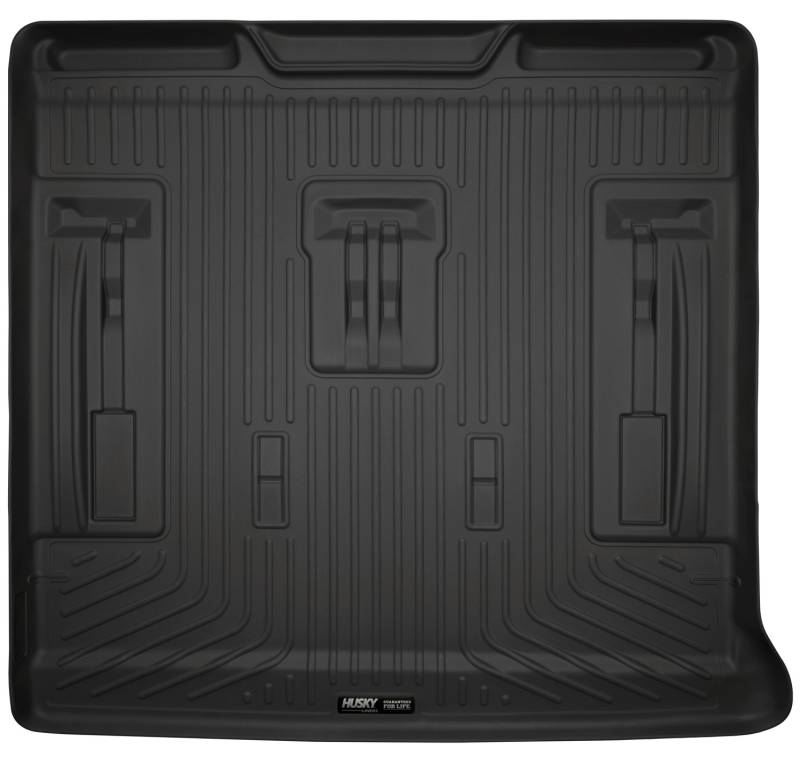 Weatherbeater - Cargo Liner The original all-weather liner is ready, come hell or hot coffee. The Weatherbeater?s construction is a no-slip zone with zero edge curl, and its Stay Put Nibs keep it firmly anchored underfoot. It stands up to chemicals like gas, oil and battery acid, and stays tough and flexible, even under extreme temperatures. Its laser-scanned, FormFit Design? gives your truck, van or SUV an ultra-clean look with easy cleanup to match, while its patented, FormFit Edge? keeps spills contained, carpets unstained. It?s unbeatable Husky protection for life, warrantied the same. Proudly made in the USA. Our patented FormFit Design(TM) process gives you a glove-like, laser-tight fit to your make and model. Floorboards are 3D scanned to precisely match the contours of your vehicle. Our patented FormFit Edge(TM) features a raised ridge that runs along the door jam, protecting your truck, van, or SUV from all manner of muck. Over vinyl or carpet, our StayPut(TM) Cleats firmly lock to your factory anchors. It's rock-steady stability underfoot, only by Husky. Sporty, rugged, and built for a lifetime of non-stop abuse. Put unbeatable all-weather toughness to work on your floor. WeatherBeater(TM) Liners offer protection that extends all the way to your rear seats. So go ahead, lift the seats and leave them up, load after load. Husky's got your floors, and your back, no matter what the road brings your way.