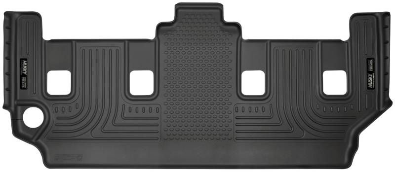 Weatherbeater - 3rd Seat Floor Liner The original all-weather liner is ready, come hell or hot coffee. The Weatherbeater?s construction is a no-slip zone with zero edge curl, and its Stay Put Nibs keep it firmly anchored underfoot. It stands up to chemicals like gas, oil and battery acid, and stays tough and flexible, even under extreme temperatures. Its laser-scanned, FormFit Design? gives your truck, van or SUV an ultra-clean look with easy cleanup to match, while its patented, FormFit Edge? keeps spills contained, carpets unstained. It?s unbeatable Husky protection for life, warrantied the same. Proudly made in the USA. Our patented FormFit Design(TM) process gives you a glove-like, laser-tight fit to your make and model. Floorboards are 3D scanned to precisely match the contours of your vehicle. Our patented FormFit Edge(TM) features a raised ridge that runs along the door jam, protecting your truck, van, or SUV from all manner of muck. Over vinyl or carpet, our StayPut(TM) Cleats firmly lock to your factory anchors. It's rock-steady stability underfoot, only by Husky. Sporty, rugged, and built for a lifetime of non-stop abuse. Put unbeatable all-weather toughness to work on your floor. WeatherBeater(TM) Liners offer protection that extends all the way to your rear seats. So go ahead, lift the seats and leave them up, load after load. Husky's got your floors, and your back, no matter what the road brings your way.