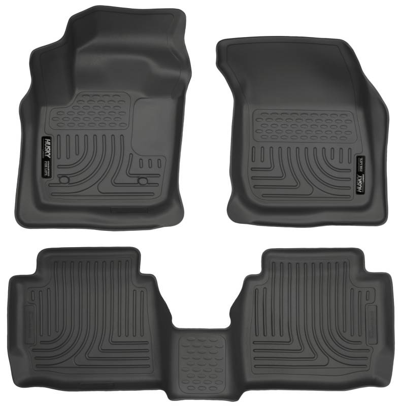 Weatherbeater - Front & 2nd Seat Floor Liners The original all-weather liner is ready, come hell or hot coffee. The Weatherbeater?s construction is a no-slip zone with zero edge curl, and its Stay Put Nibs keep it firmly anchored underfoot. It stands up to chemicals like gas, oil and battery acid, and stays tough and flexible, even under extreme temperatures. Its laser-scanned, FormFit Design? gives your truck, van or SUV an ultra-clean look with easy cleanup to match, while its patented, FormFit Edge? keeps spills contained, carpets unstained. It?s unbeatable Husky protection for life, warrantied the same. Proudly made in the USA. Our patented FormFit Design(TM) process gives you a glove-like, laser-tight fit to your make and model. Floorboards are 3D scanned to precisely match the contours of your vehicle. Our patented FormFit Edge(TM) features a raised ridge that runs along the door jam, protecting your truck, van, or SUV from all manner of muck. Over vinyl or carpet, our StayPut(TM) Cleats firmly lock to your factory anchors. It's rock-steady stability underfoot, only by Husky. Sporty, rugged, and built for a lifetime of non-stop abuse. Put unbeatable all-weather toughness to work on your floor. WeatherBeater(TM) Liners offer protection that extends all the way to your rear seats. So go ahead, lift the seats and leave them up, load after load. Husky's got your floors, and your back, no matter what the road brings your way.