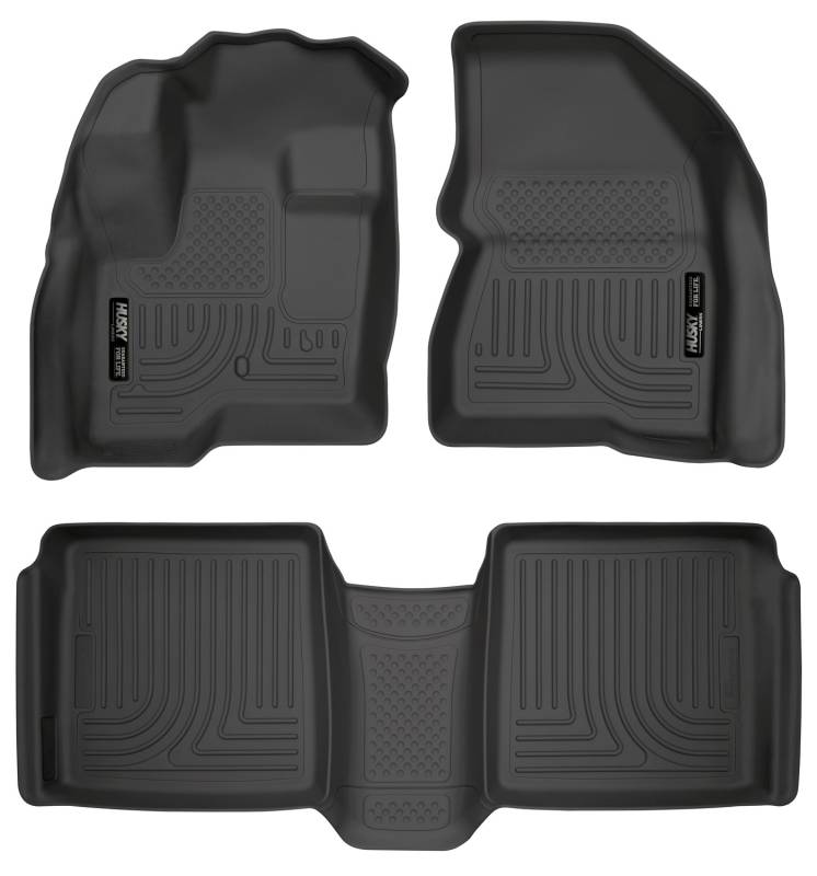 Weatherbeater - Front & 2nd Seat Floor Liners The original all-weather liner is ready, come hell or hot coffee. The Weatherbeater?s construction is a no-slip zone with zero edge curl, and its Stay Put Nibs keep it firmly anchored underfoot. It stands up to chemicals like gas, oil and battery acid, and stays tough and flexible, even under extreme temperatures. Its laser-scanned, FormFit Design? gives your truck, van or SUV an ultra-clean look with easy cleanup to match, while its patented, FormFit Edge? keeps spills contained, carpets unstained. It?s unbeatable Husky protection for life, warrantied the same. Proudly made in the USA. Our patented FormFit Design(TM) process gives you a glove-like, laser-tight fit to your make and model. Floorboards are 3D scanned to precisely match the contours of your vehicle. Our patented FormFit Edge(TM) features a raised ridge that runs along the door jam, protecting your truck, van, or SUV from all manner of muck. Over vinyl or carpet, our StayPut(TM) Cleats firmly lock to your factory anchors. It's rock-steady stability underfoot, only by Husky. Sporty, rugged, and built for a lifetime of non-stop abuse. Put unbeatable all-weather toughness to work on your floor. WeatherBeater(TM) Liners offer protection that extends all the way to your rear seats. So go ahead, lift the seats and leave them up, load after load. Husky's got your floors, and your back, no matter what the road brings your way.
