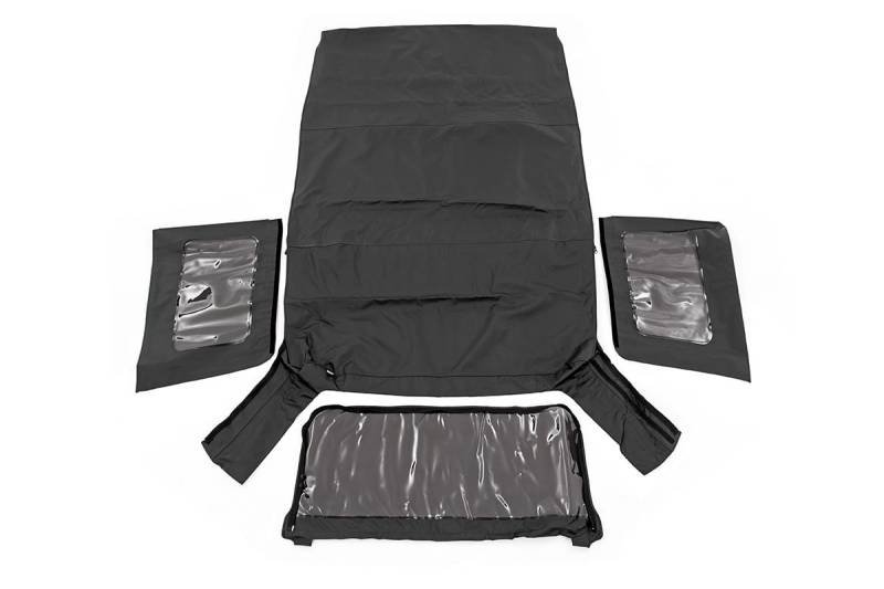 Upgrade Your Style. You love your Jeep Wrangler. And for good reason. It's a vehicle that embodies freedom, adventure, and the off-road lifestyle. But sometimes, you want to create something different, something more exciting. With our weather-resistant soft top replacement, we're making it easier than ever to customize your ride. Now you can upgrade your style while maintaining the rugged durability you depend on. Rough Country's Soft Top Cover is custom-designed to replace your JK factory top with ease. It's built to withstand even the harshest elements while providing lasting durability and unique styling.\ Quality Construction. If you want your Jeep to last, you need to protect it! Our top covers feature a premium fabric that withstands the most extreme conditions. You can rely on our premium fit and construction to keep your Jeep looking sharp and ready to go. Our UV and mildew resistant vinyl coated polyester cotton material make this cover heat and water-resistant, with reinforced stitching with marine-grade bonded polyester thread, double stitched with heat-tape sealed seams for watertight protection. When you're ready for the breeze, our DOT-approved zip-on windows can be removed easily. If you want to experience the utmost in adventure, you need a top that can stand up to even the toughest conditions.\ Installation. What makes our top different? Built to factory original quality specifications, it's designed to provide a tight, wrinkle-free fit on your JK Wrangler. Easy installation and durable all-weather fabric make this top a smart choice for the active enthusiast. With our state-of-the-art Belt Rail and Hook & Loop attachments, we've taken the guesswork out of installing Jeep tops so you can get a smooth, stable snap-on fit every time.\ Limited Lifetime Replacement Warranty. »Rough Country's products are backed with a limited lifetime replacement warranty towards manufacturer defects. As such, the product is protected from structural and workmanship damage after the date of purchase. With our industry-leading warranty give yourself peace of mind when using Rough Country's products!