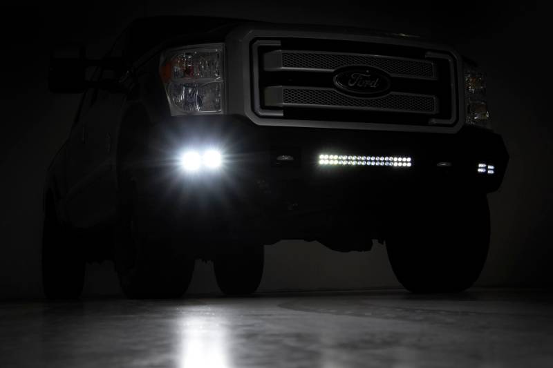 - Easy to install!\ Durable, steel construction\ Includes (4) Rough Country LED Cubes\ Includes 20in Rough Country LED Light Bar\ Retains factory tow hooks\ Retains factory proximity sensors\ .