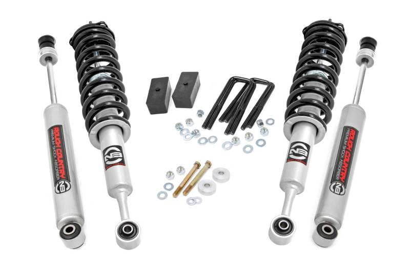 Explore New Heights. If you're looking for not-too-tall and not-too-small, Rough Country's 3" Lifted Strut kit is the perfect option for increased ground clearance and aggressive good looks! This all-inclusive kit features everything you need for a stunning, new appearance and enhanced off-road action, with a host of features designed to promote an incredible suspension geometry and ride quality!Innovative Design and Construction. Rough Country's 3-in lift features a set of application-valved lifted struts to provide optimal ride quality and superior looks! This perfect-height lift is a great choice for anyone who wants more than a simple level but doesn't quite want the full height of a 4 or 6-inch option. This kit lifts and levels the front of the vehicle with the rear, offering enough increased ground clearance to run up to 33" tires with an improved, aggressive look. We didn't want to limit you to one standard kit. Rough Country's 3-inch kit is configurable with all the shock options that we offer. This allows you to choose which shock series you want! Ranging from our nitrogen-charged N3 shocks to our Vertex reservoir shocks the power to choose is in your hands.Installation. Featuring a 100% bolt-on installation process, an estimated timeframe of 2-4 hours is recommended to complete this full installation. This full kit can be installed at home and can be completed efficiently and quickly!Limited Lifetime Replacement Warranty. Rough Country's 3" Suspension Lift Kit is backed with a limited lifetime replacement warranty towards manufacturer defects. As such, the product is protected from structural and workmanship damage after the date of purchase. With our industry-leading warranty give yourself peace of mind when using Rough Country's Suspension products!