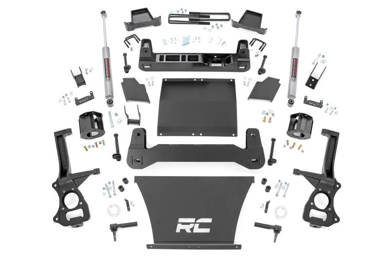 GM's 2019 1500 features an impressive all-new design that's built from the ground up, with aggressive angles and head-turning stylings that fit in beautifully when transformed with Rough Country's 4in Suspension Lift.This kit lifts and levels your vehicle for a commanding stance and enough clearance to run 35x12.50 tires on 10in wide wheels. Rough Country has engineered this kit to provide optimal suspension geometry while retaining the factory ride quality, giving you enhanced off-road capabilities without sacrificing the handling and smooth ride that makes this truck so impressive.Rough Country's 6in Suspension lift retains the stock track width, allowing for up to a 10in wide wheel with 4.5in backspacing. Each kit includes front and rear crossmembers and a skid plate for enhanced chassis strength as well as cast steel knuckles for incredible durability and performance. Includes Rough Country's Lifetime Replacement Guarantee! \ \