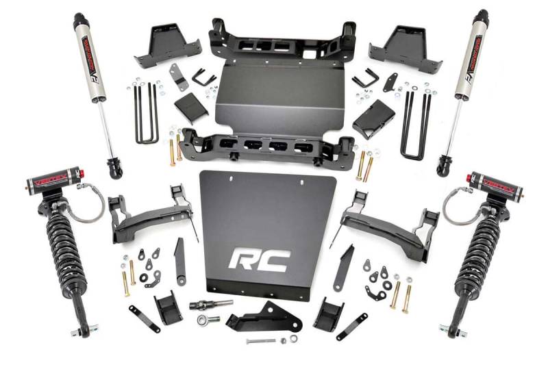 Massive Lift. Factory Fitment. Unbeatable Style: Give your hardworking Chevy Silverado or GMC Sierra 1500 the aggressive stance and towering ride height it deserves with Rough Country's bold 7-Inch Suspension Lift Kit. Engineered to maintain factory track width, this kit keeps your handling tight and predictable unlike many wider kits that compromise drivability. Best of all, it's compatible with OEM 20-inch wheels, allowing you to run up to 35-inch tires without the need for aftermarket wheel spacers or custom solutions.Built Tough. Designed Smarter: This complete system includes loaded strut assemblies, laser-cut front and rear crossmembers, and front and rear skid plates all crafted by Rough Country's in-house R&D team for a perfect fit and premium durability. It's a fully bolt-on upgrade that doesn't just look good it performs flawlessly off-road thanks to the enhanced ground clearance, giving you more room to navigate rocks, ruts, and rough terrain with confidence.Durable Rear Blocks. Ride-Quality Focused: Out back, the kit features high-strength fabricated 6-inch lift blocks stronger and more reliable than cast alternatives with an anti-axle wrap design that maintains stock ride quality while eliminating the dreaded axle wrap often caused by typical big lifts. Whether towing, crawling, or cruising, your ride remains smooth and stable.Customize Your Shocks. Match Your Ride: This kit comes standard with our Nitrogen-charged N3 Shocks, delivering excellent on- and off-road performance thanks to 10-stage velocity-sensitive valving. Want even more control? The system is fully compatible with all Rough Country shock and strut upgrades, including the high-performance Vertex reservoir series so you can dial in the exact feel and responsiveness you want.Everything You Need, All in One Box: From differential and sway-bar drop brackets to the strongest crossmembers in the game, Rough Country includes everything required for a seamless install and lasting performance.