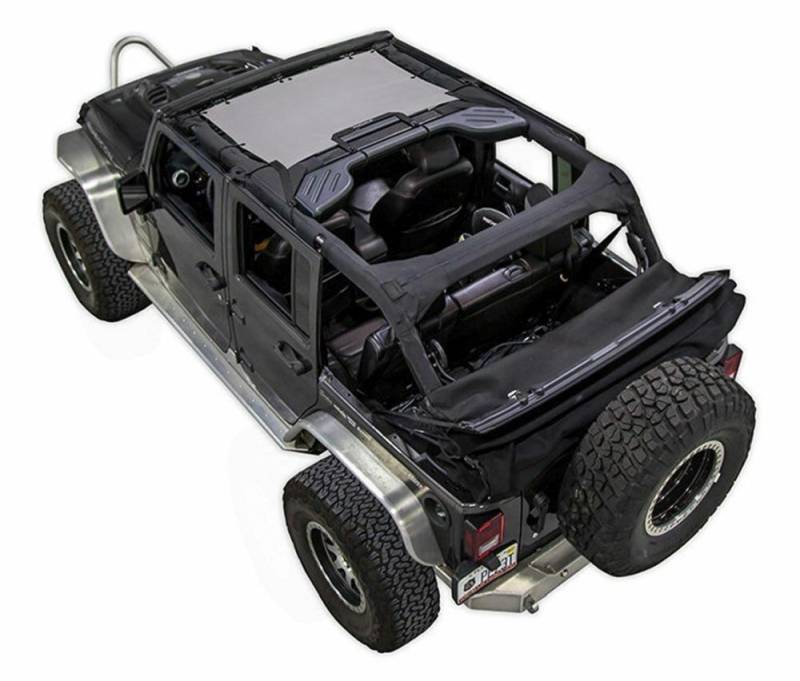 The JKini is our version of the classic Kini Top and it is the top choice for Jeep owners world-wide who are looking for a one-piece Kini only top to cover driver and passenger seat riders. This high quality, NO-header-needed mesh top is custom is designed to fit all Jeep Wrangler JK 4-door models.