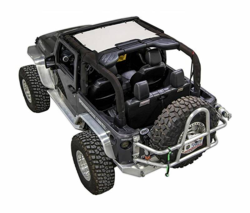 - The SPIDERWEBSHADE for Jeeps is the world’s most effective solution for blocking the sun’s scorching rays from your head, face and neck while drastically reducing the wind noise at highway speeds.