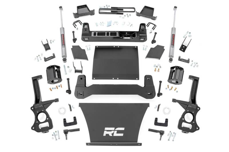Explore New Heights: Chevy's fourth generation 1500 features an impressive all-new design that's built from the ground up, with aggressive angles and head-turning stylings that fit in beautifully when transformed with Rough Country's 6-inch Suspension Lift.Innovative Design and Construction: When changing a vehicle's suspension, the key to preserving ride quality is keeping the geometry of all suspension components as close to their factory angles as possible.This suspension kit combines the use of durable steel knuckles, differential brackets, and drop cross members to reduce cv angles and simulate factory angles all while achieving new heights. Featuring a set of upper strut spacers that offer uncompromised strength and rigidity, gaining lift height is no issue. Completing the rear of this suspension kit is a set of rear blocks, shocks, and u-bolts that allow you to retain factory-like geometry. This combined setup provides enough clearance to run 35" tires without additional modifications. We didn't want to limit you to one standard kit. Rough Country's 6-inch kit is configurable with all the shock options that we offer. This allows you to choose which shock series you want! Ranging from our nitrogen-charged N3 shocks to our Vertex reservoir shocks the power to choose is in your hands.Installation: With minor cutting and a strut compressor required to install, an estimated timeframe of 8-10 hours is recommended to complete this full installation. This full kit can be installed at home and can be completed efficiently and quickly!Limited Lifetime Replacement Warranty: Rough Country's 6" Suspension Lift Kit is backed with a limited lifetime replacement warranty towards manufacturer defects. As such, the product is protected from structural and workmanship damage after the date of purchase. With our industry-leading warranty give yourself peace of mind when using Rough Country's Suspension products!
