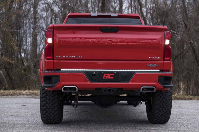Enhance the rear of your truck with Rough Country's Quad-Row Multifunction LED Tailgate Light Strip. This easy-to-install LED strip is both practical and enjoyable, with multiple lighting functions that enhance daily driving while dressing up the rear of your truck.Rough Country's Multifunction LED Tailgate Light Strips offer multiple modes that accentuate different driving scenarios. With a series of red and white LED's all tied into the same strip, this tailgate upgrade offers bright red brake lights, dim red running lights, white reverse lights, and half-panel turn signal lights.These Multifunction LED Tailgate Light Strips are easy to install, with a plug-and-play 4 pin adapter that connects easily and effortlessly to your truck's trailer connector for immediate use. The LED strip itself adheres with a set of pre-included 3M automotive-grade adhesive pads that go on fast and stay put. These handy tailgate LED Lights install into the recess between the tailgate and the bumper. Each Multi-Function Tailgate LED strip features an IP68 Waterproof design, guaranteed to resist dust and even prolonged water immersion. Includes Rough Country's 3-year limited Warranty.