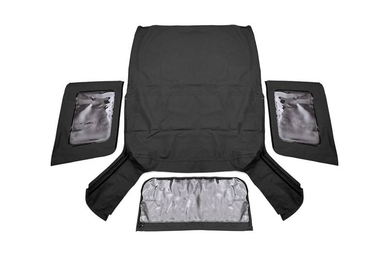 Upgrade Your Style. You love your Jeep Wrangler. And for good reason. It's a vehicle that embodies freedom, adventure, and the off-road lifestyle. But sometimes, you want to create something different, something more exciting. With our weather-resistant soft top replacement, we're making it easier than ever to customize your ride. Now you can upgrade your style while maintaining the rugged durability you depend on. Rough Country's Soft Top Cover is custom-designed to replace your JK factory top with ease. It's built to withstand even the harshest elements while providing lasting durability and unique styling.\ Quality Construction. If you want your Jeep to last, you need to protect it! Our top covers feature a premium fabric that withstands the most extreme conditions. You can rely on our premium fit and construction to keep your Jeep looking sharp and ready to go. Our UV and mildew resistant vinyl coated polyester cotton material make this cover heat and water-resistant, with reinforced stitching with marine-grade bonded polyester thread, double stitched with heat-tape sealed seams for watertight protection. When you're ready for the breeze, our DOT-approved zip-on windows can be removed easily. If you want to experience the utmost in adventure, you need a top that can stand up to even the toughest conditions.\ Installation. What makes our top different? Built to factory original quality specifications, it's designed to provide a tight, wrinkle-free fit on your JK Wrangler. Easy installation and durable all-weather fabric make this top a smart choice for the active enthusiast. With our state-of-the-art Belt Rail and Hook & Loop attachments, we've taken the guesswork out of installing Jeep tops so you can get a smooth, stable snap-on fit every time.\ Limited Lifetime Replacement Warranty. »Rough Country's products are backed with a limited lifetime replacement warranty towards manufacturer defects. As such, the product is protected from structural and workmanship damage after the date of purchase. With our industry-leading warranty give yourself peace of mind when using Rough Country's products!