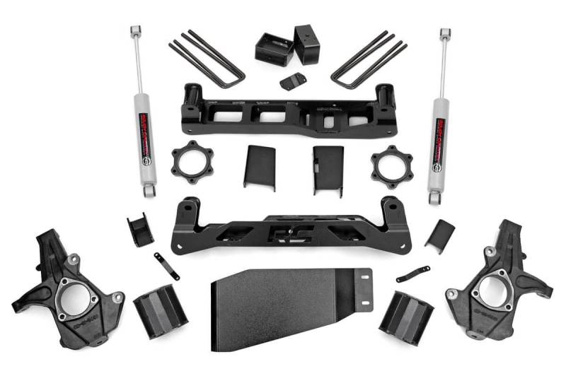 Bold Stance, Superior Performance: Take your Chevy/GMC 1500 to the next level with Rough Country's 5-Inch Suspension Lift Kit. This kit delivers the aggressive, leveled look you want-while preserving your factory ride quality. Run up to 33-inch tires on your stock 20-inch wheels and enjoy a high-clearance crossmember design that dramatically increases ground clearance for confident off-road capability. Engineered for Strength and Precision: Built with 100% laser-cut materials using state-of-the-art CAD technology, this kit ensures a perfect fit and long-lasting durability. The 5-inch lifted knuckle design maintains proper geometry for a smooth, factory-like ride. Durable fabricated rear blocks offer greater strength and longevity than cast alternatives, while eliminating common lift block issues.Premium Shock Performance: Included N3 Series shock absorbers are application-valved for your truck, delivering a well-balanced ride both on and off the road. Want even more performance? Upgrade to N3 loaded struts for better ride quality, quicker installation, and enhanced suspension response without the use of spacers.Hassle-Free Installation and Backed by Warranty: This all-in-one kit includes everything needed for a smooth install, along with clear instructions for the DIY enthusiast. And with Rough Country's Limited Lifetime Warranty, you get peace of mind that your lift kit is built to perform for the long haul.