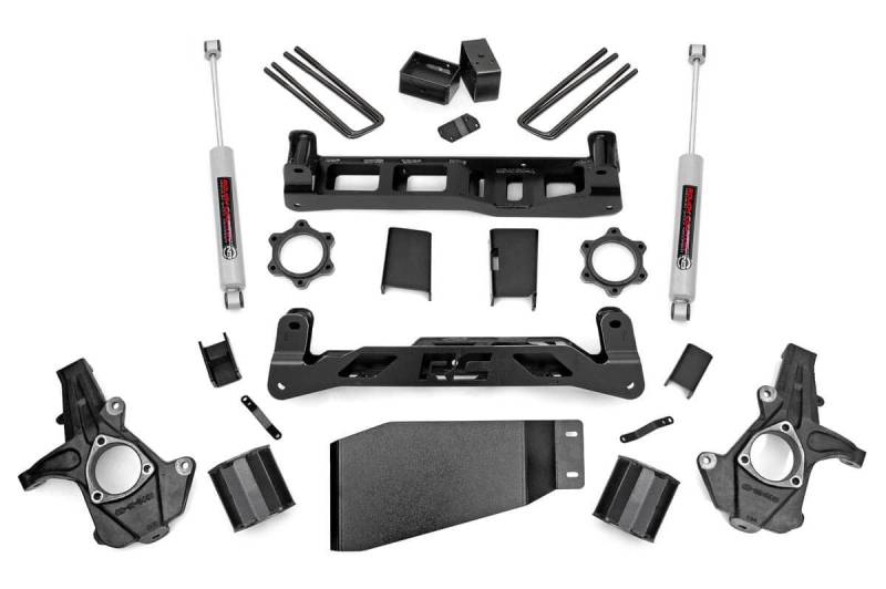 Bold Stance, Superior Performance: Take your Chevy/GMC 1500 to the next level with Rough Country's 5-Inch Suspension Lift Kit. This kit delivers the aggressive, leveled look you want-while preserving your factory ride quality. Run up to 33-inch tires on your stock 20-inch wheels and enjoy a high-clearance crossmember design that dramatically increases ground clearance for confident off-road capability.Engineered for Strength and Precision: Built with 100% laser-cut materials using state-of-the-art CAD technology, this kit ensures a perfect fit and long-lasting durability. The 5-inch lifted knuckle design maintains proper geometry for a smooth, factory-like ride. Durable fabricated rear blocks offer greater strength and longevity than cast alternatives, while eliminating common lift block issues.Premium Shock Performance: Included N3 Series shock absorbers are application-valved for your truck, delivering a well-balanced ride both on and off the road. Want even more performance? Upgrade to N3 loaded struts for better ride quality, quicker installation, and enhanced suspension response without the use of spacers.Hassle-Free Installation and Backed by Warranty: This all-in-one kit includes everything needed for a smooth install, along with clear instructions for the DIY enthusiast. And with Rough Country's Limited Lifetime Warranty, you get peace of mind that your lift kit is built to perform for the long haul.